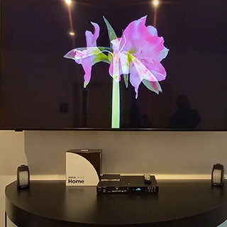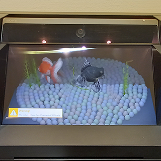 視線認識技術によって、あなたの目の位置を常に検出し、左右それぞれの目に最適な映像を生成。専用のゴーグルやメガネを使わず、裸眼で色鮮やかでクリアな立体視体験を2.1chのサウンドとともに28作品を手に取れる様な精度で立体視を再現します。