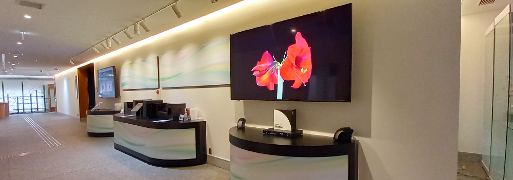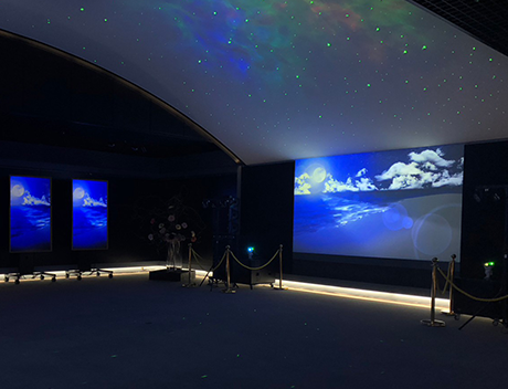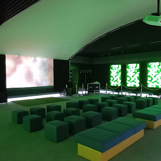 160インチと90インチ横スクリーンに、10台の75インチ縦型モニターを備えた映像展示室です。デジタルサイネージは単なる案内や広告の枠を越え、特殊な体験を提供する新たなツールとなっていきます。