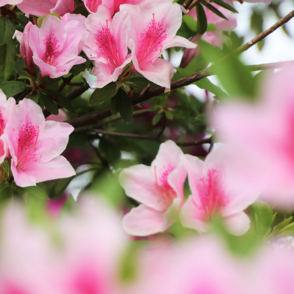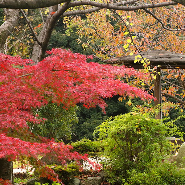 春には桜、初夏には深紅のキリヤマツツジ、夏には杉林や孟宗竹の緑が鮮やかです。また秋には萩や紅葉が見られます。